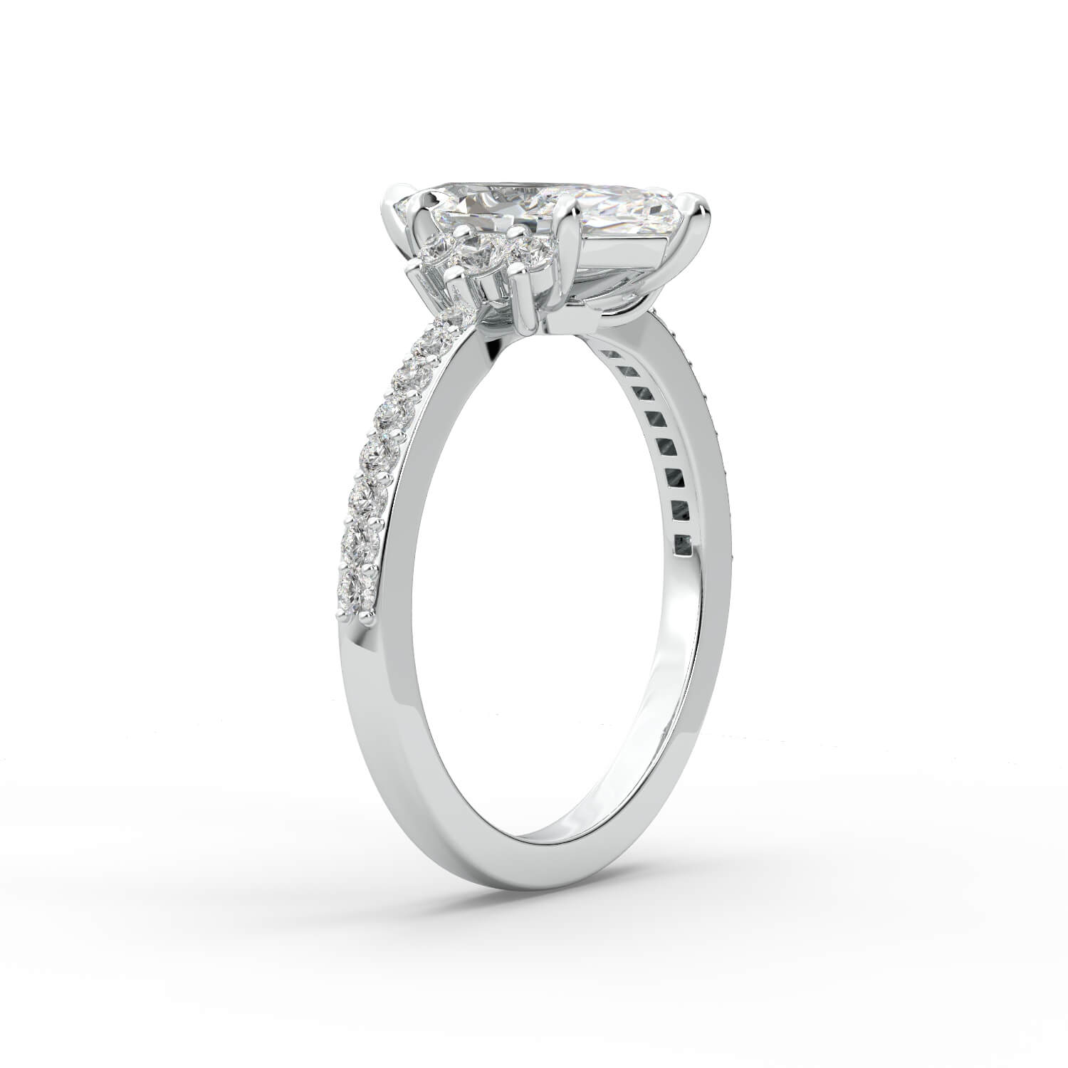 טבעת זהב לבן 14K משובץ ביהלום בחיתוך רדיאן עם אבני צד