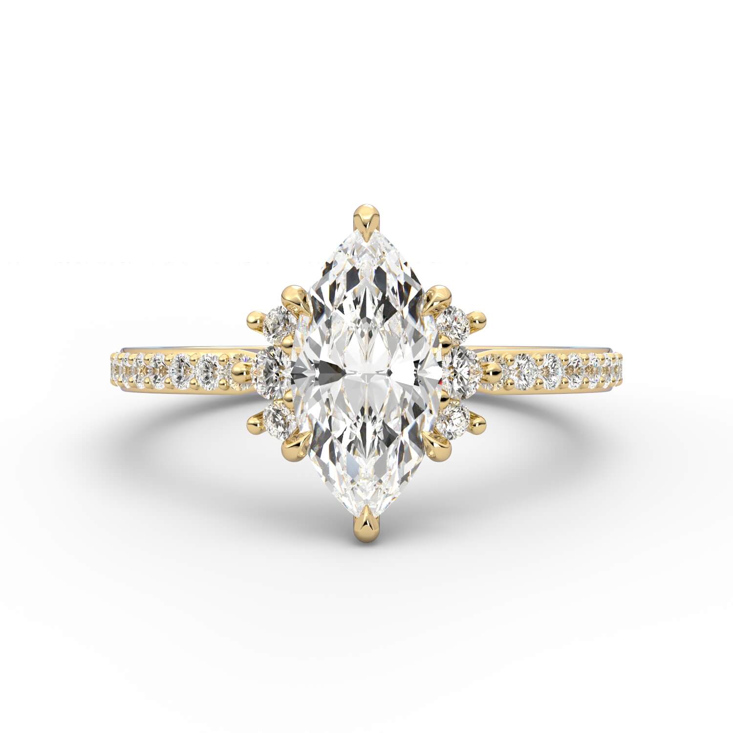 טבעת זהב לבן 14K משובץ ביהלום בחיתוך רדיאן עם שיבוץ מרקיזות בצד