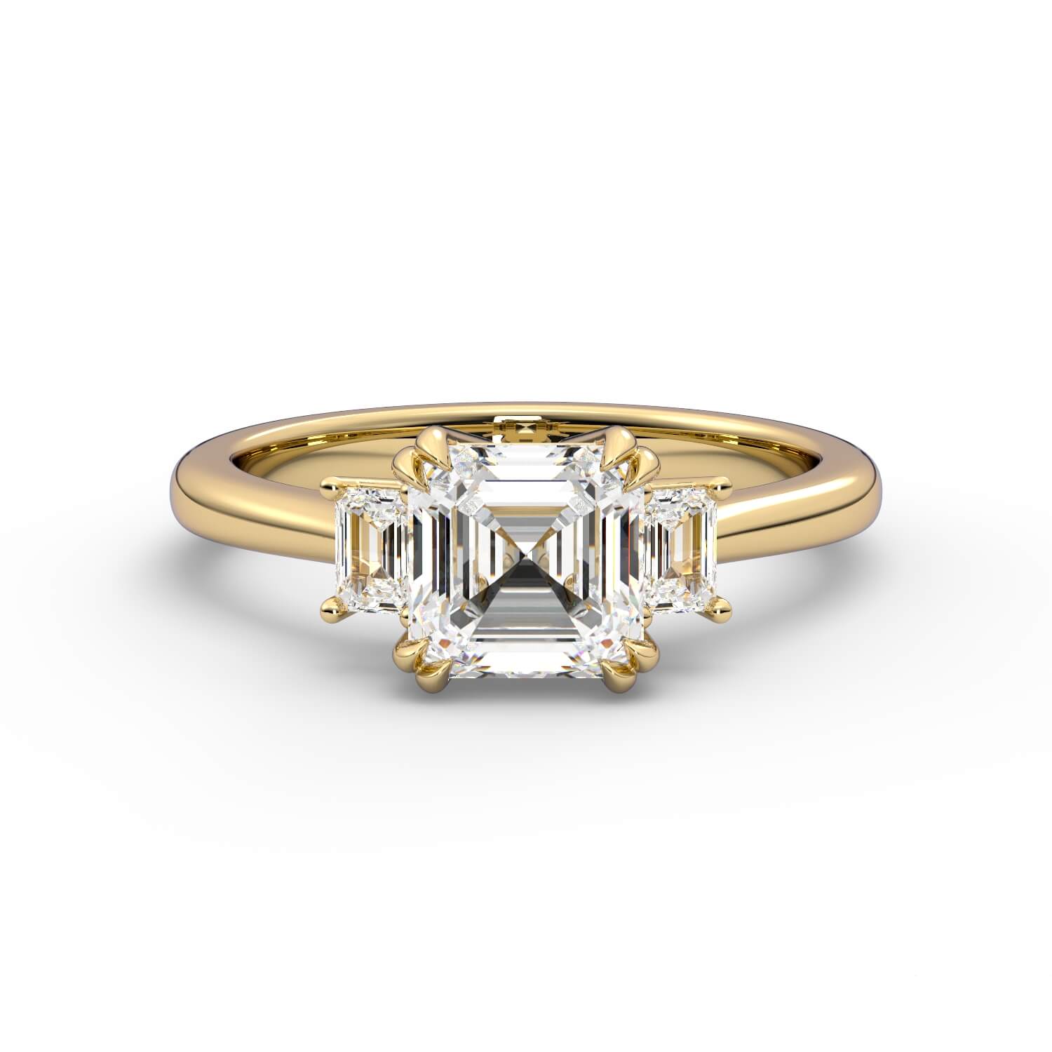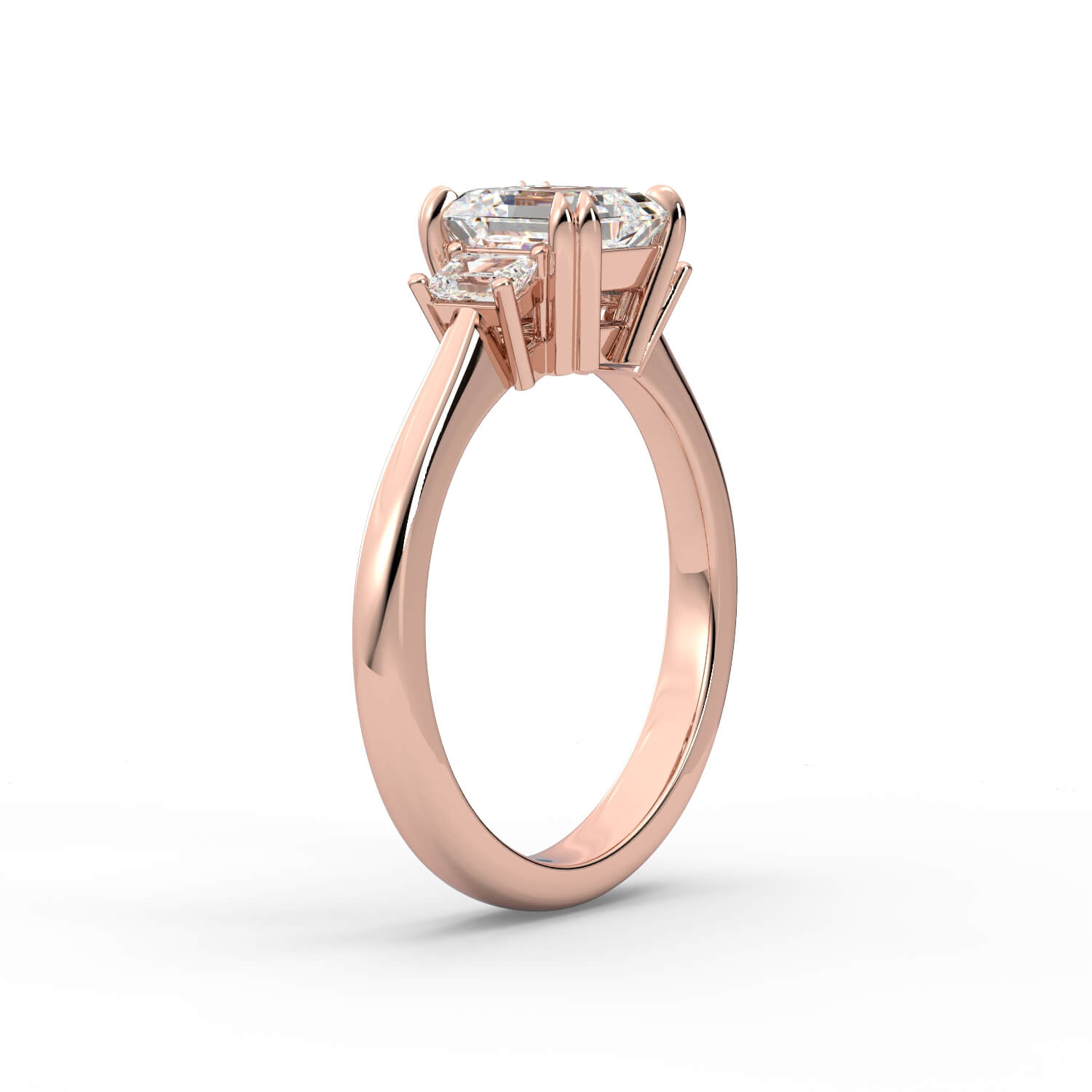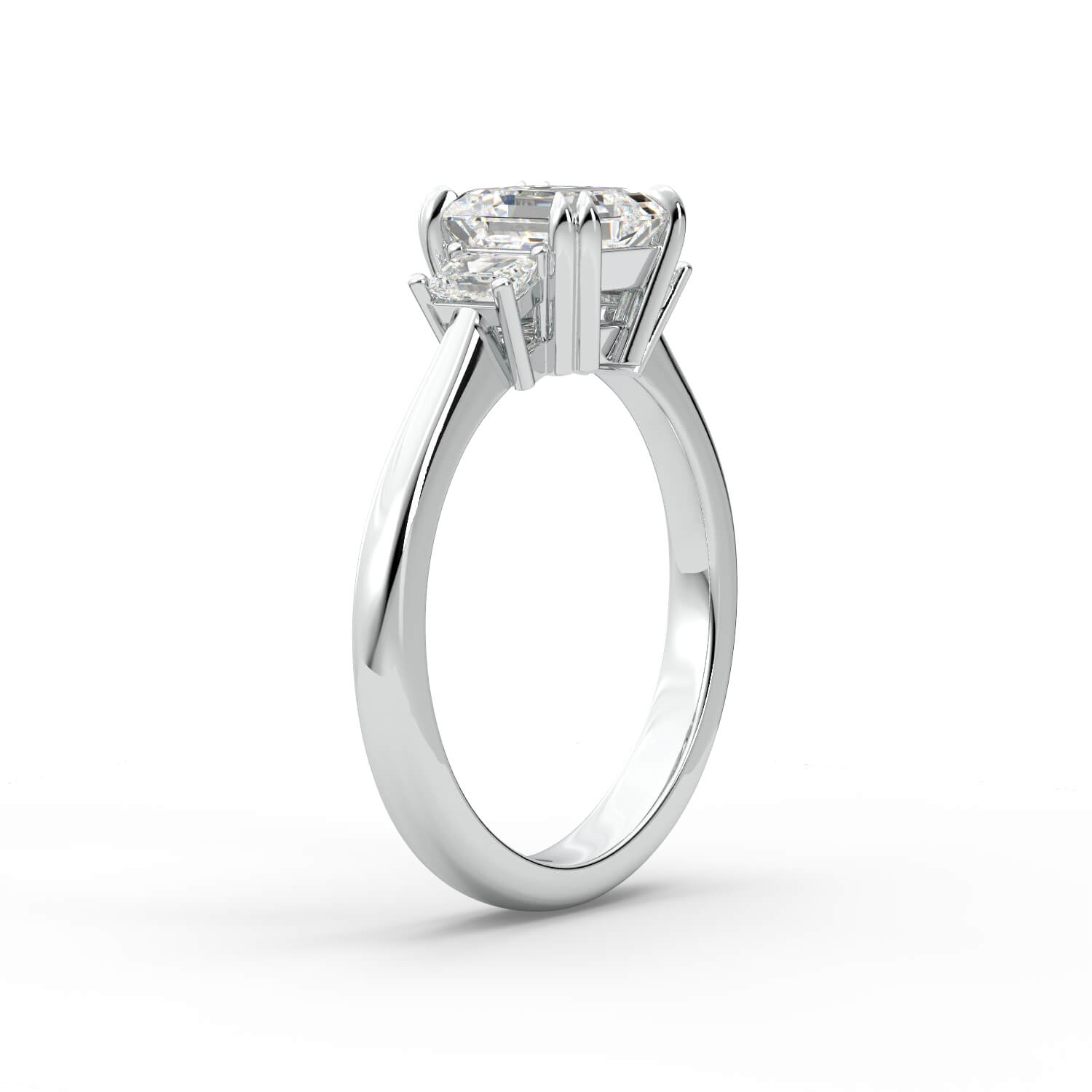טבעת זהב לבן 14K שלוש אבנים משובץ ביהלום בחיתוך רדיאן ושני טרפזים
